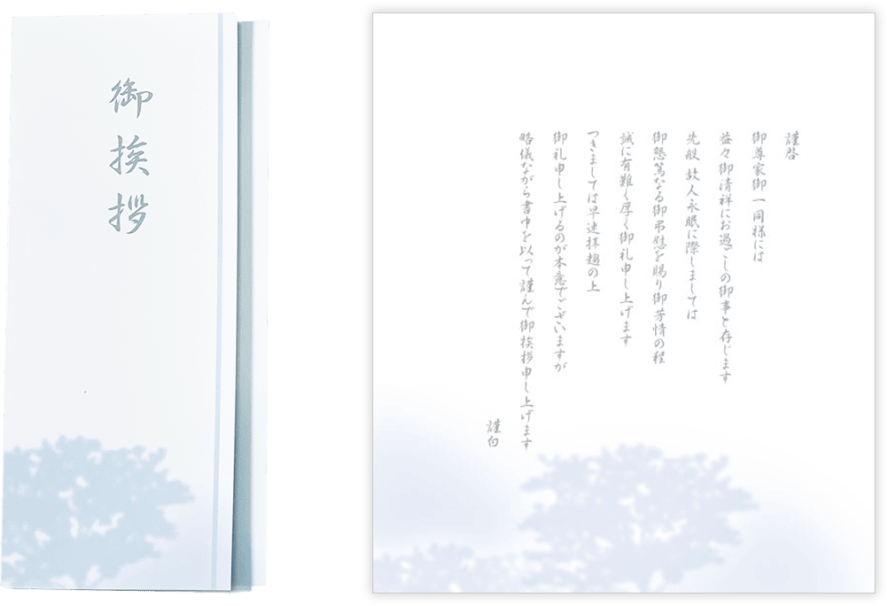 さらに、定型あいさつ状やオリジナル弔事用カードもつけられます。