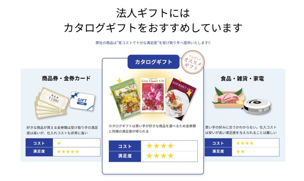 福利厚生のギフトにカタログギフトをお探しの方は、カタログギフト専門店「ラムビット」がおすすめです。法人様向けの一括発注にも対応しております。気になる方は、以下のリンクからラインナップをチェックしてみてください。