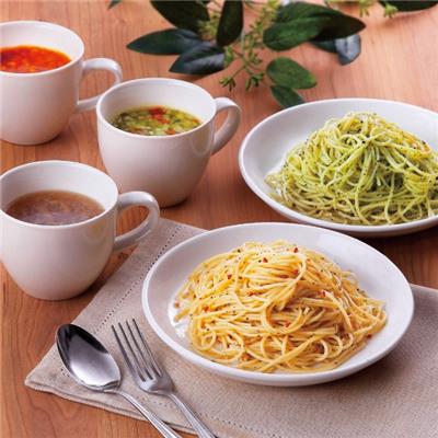 (オニオンスープ・ミネストローネ・緑色野菜の塩スープ)各2・粉末パスタソース(ジェノベーゼ・ペペロンチーノ)各3 【乳成分・小麦】