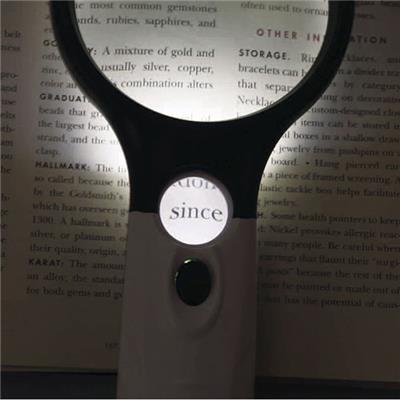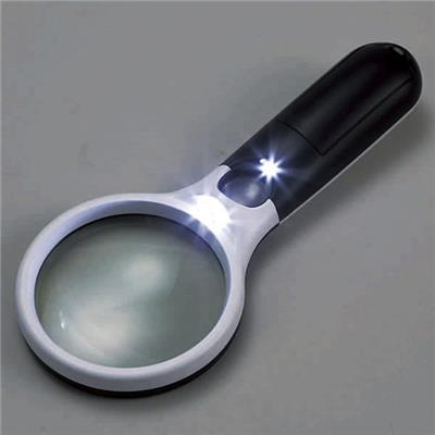 5倍と10倍の2つのレンズと、明るいLEDライトで、文字をはっきり確認できます。単4乾電池×3個使用(別売)