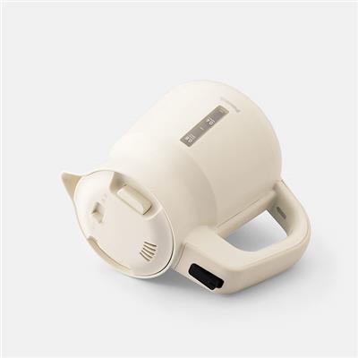 温かみのあるフォルムと使いやすいシンプル機能。持ち運びに便利な本体コードレス。もしも倒してしまっても湯もれを最小限におさえる安心設計。