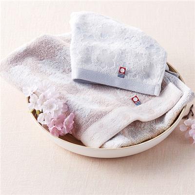 ふわりと舞うサクラを一枚のタオルに閉じ込めました。伝統の技術で織り上げられた今治産のタオルは、使いはじめから吸水性がよく、ふんわりとした風合いが長続きします。