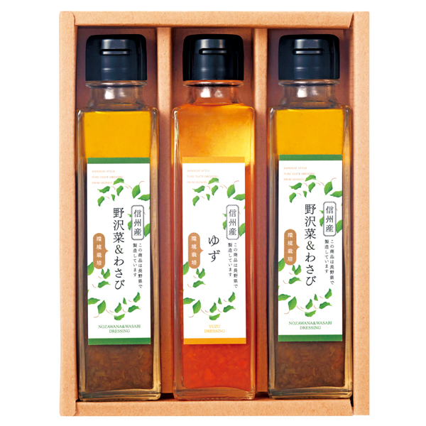 (野沢菜&わさびドレッシング×2・ゆずドレッシング)各150mL 【小麦】