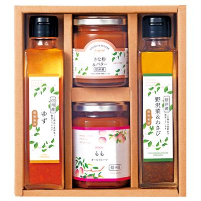 ももスプレッド140g、きな粉&バターペースト110g、(ゆずドレッシング・野沢菜&わさびドレッシング)各150mL 【乳成分・小麦】