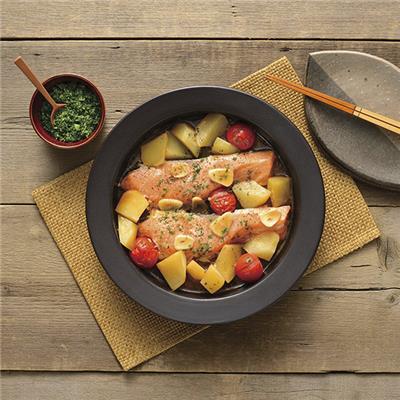 火加減調整不要!簡単調理♪レンジなのに焼き目も付けられて、そのまま食卓に出せるお皿。電子レンジのマイクロ波と陶器の発熱効果で肉料理や魚料理が短時間で簡単に作れます。■ レンジで、肉や魚が調理できる(ラップ使用不可)■ 直火・オーブンもOK!■ そのまま食卓へ=洗い物を減らせる