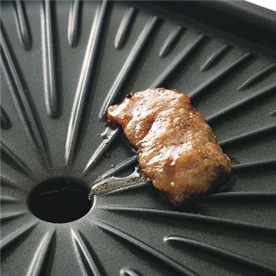 焼き肉プレートは傾斜付きなので、食材の余分な油を落としながら焼くことができます。