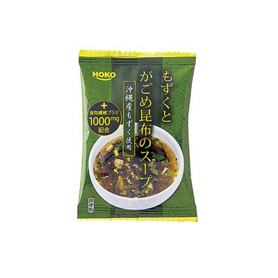 国内有数の生産量を誇る沖縄産のもずくとぬめりの強いがごめ昆布を使った、食物繊維1000mg配合のスープです。1食わずか14 kcaLなので食事を気にされる方にもおすすめです。
