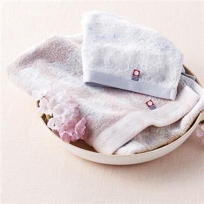 ふわりと舞うサクラを一枚のタオルに閉じ込めました。伝統の技術で織り上げられた今治産のタオルは、使いはじめから吸水性がよく、ふんわりとした風合いが長続きします。