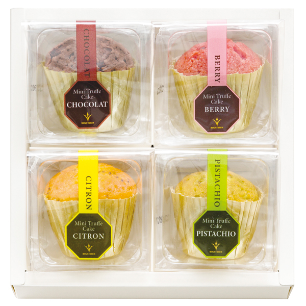 人気のトリュフケーキをミニサイズにしたベリー・ピスタチオ・レモンのバラエティ豊かな4種の詰合せです。