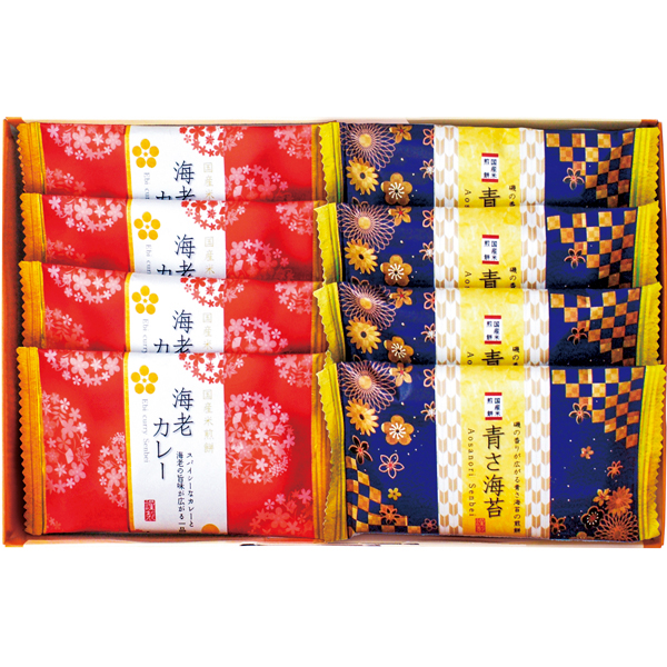 煎餅(青さ海苔・海老カレー)各4※包装済 【乳成分・えび】