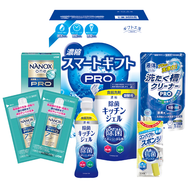 ナノックスワンPRO(10g×2)、除菌キッチンジェル(本体200mL・詰替160mL)、コンパクトスポンジ、液体洗たく槽クリーナーPRO200g