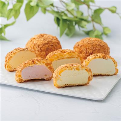 厳選したフルーツ果汁と北海道産生クリームを使用したなめらかなアイスクリームをサクサク食感のクッキーシューに閉じ込めたプレミアムシューアイス