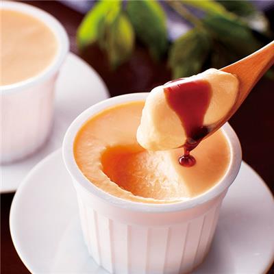 水たき料亭「博多華味鳥」で人気の卵ぷりんは、甘みと強いコクが特徴の「華味卵」を使用しております。濃厚で上品な甘さの卵ぷりん、黒みつをかけてお召しあがりください。