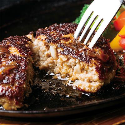 山口シェフ監修の100%牛生ハンバーグ。奈良三条の人気店・鉄板ステーキ シェルブルー山口シェフ監修の100%牛生ハンバーグ。化学調味料無添加でフレッシュ素材、製法に拘った逸品。