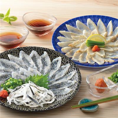 ふぐの王様「とらふぐ」とふぐの女王「まふぐ」のたたきを同時にお刺身で楽しめるちょっぴり贅沢なセットです。