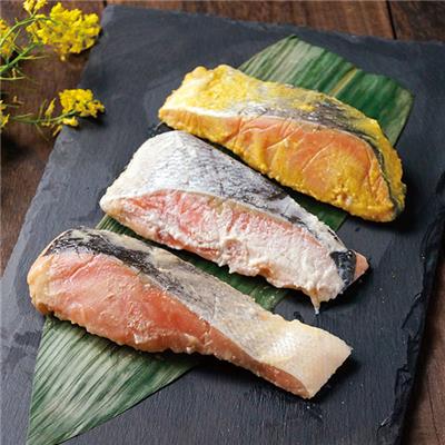 北海道・羅臼産の秋鮭を切り身にし漬け込んだ漬魚。鮭の美味しさが引き立つ3種類の味付けで漬け込みました。