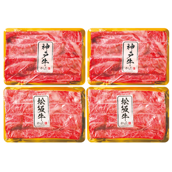 おうち時間を豪華に彩る食べ比べセット。「肉の芸術品」の異名を持つ松阪牛のおいしさの秘密は、香り、脂肪、食感。神戸牛のおいしさの特徴は旨み成分の肉繊維がきめ細かく、上品な甘みです。厳しい基準をクリアしたものだけに、最高級肉「神戸ビーフ」「神戸肉」の称号が与えられます。すき焼きやしゃぶしゃぶにぴったりのスライスした松阪牛、神戸牛です。