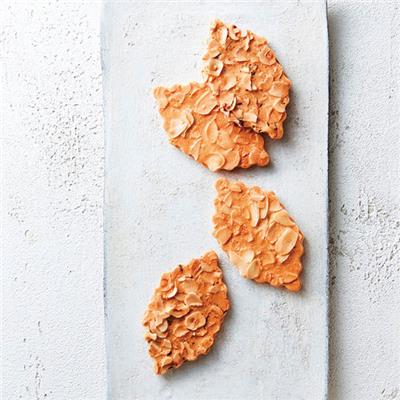 スライスナッツをしきつめてパリッと香ばしく焼き上げたクッキーにバランスよくチョコレートをサンドしました。