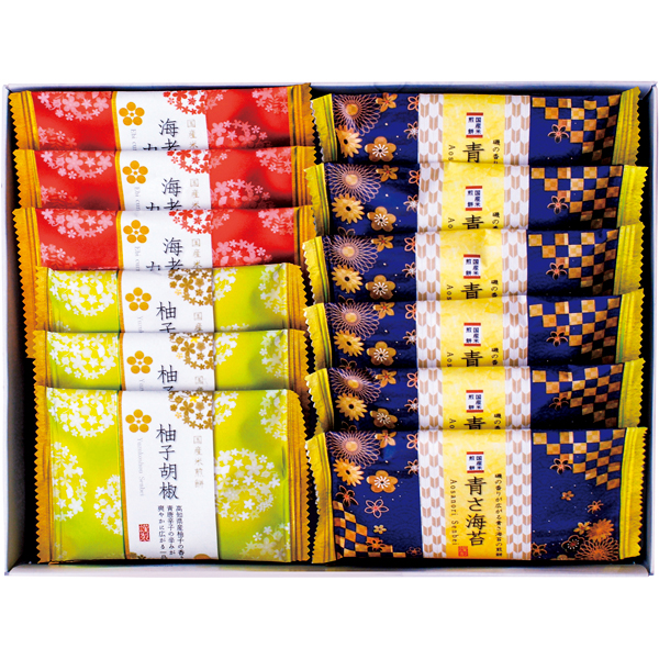 煎餅(青さ海苔×6・海老カレー×3・柚子胡椒×3) 【乳成分・えび】