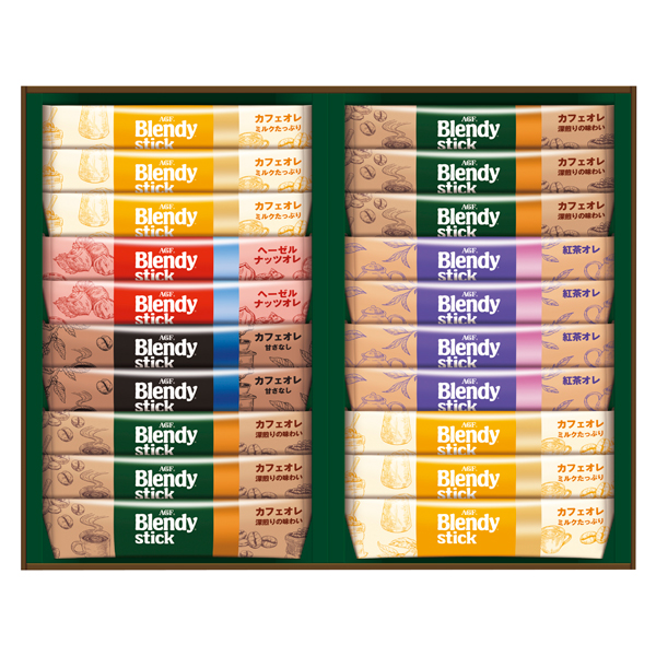 ブレンディスティック(カフェオレ14g×6・カフェオレミルクたっぷり14g×6・カフェオレ甘さなし11.4g×2・紅茶オレ11g×4・ヘーゼルナッツオレ11g×2) 【乳成分】
