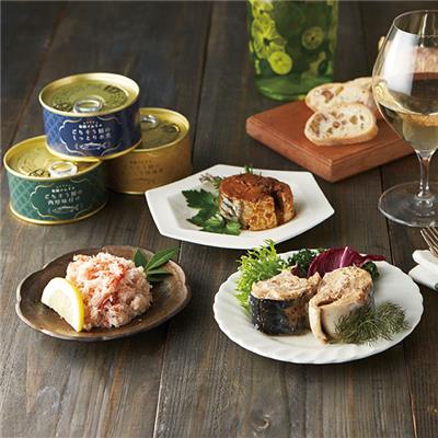 福井県で製造された使いやすいほぐし身タイプのカニ缶と旬の鯖のふっくらとした切り身のサバ缶。さまざまなお料理にぴったりの贅沢感あふれるギフトセットです。