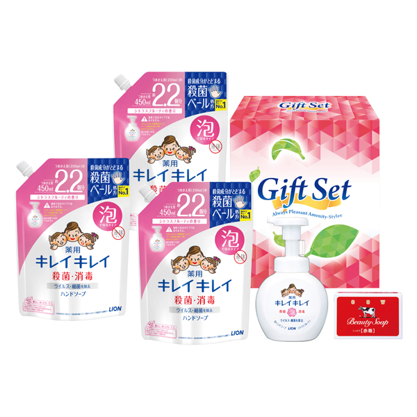 ライオンキレイキレイ薬用泡ハンドソープ主体の家族で使える清潔ギフト。