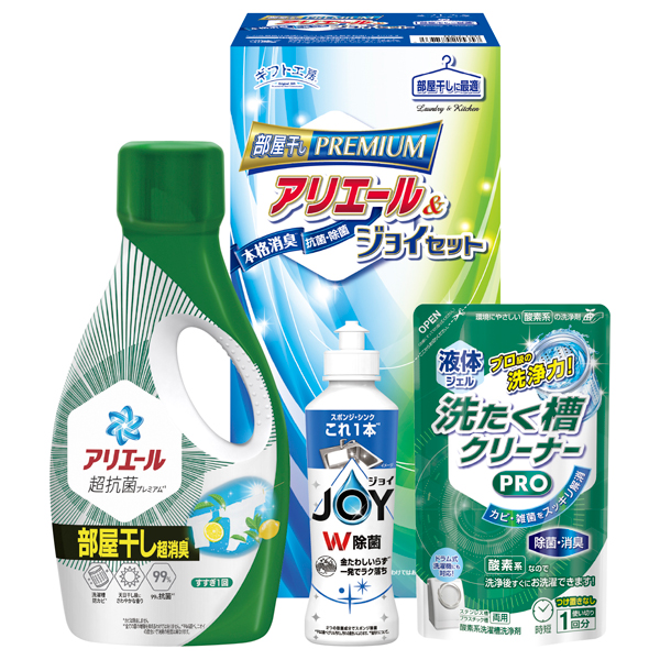 優れた本格消臭で部屋干しに最適なアリエールとダブル除菌の食器洗剤ジョイが入ったランドリー&キッチンセットです。