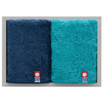 今治タオル グレースタオルハンカチ2P ブルー×ネイビー MRT01224BN