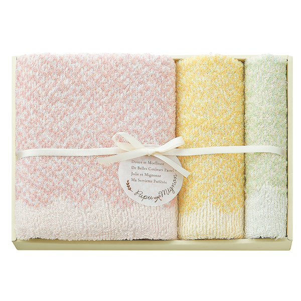 バスタオル×1、フェイスタオル×1、ウォッシュタオル×1
