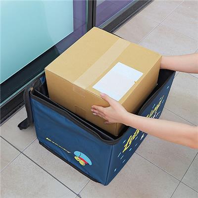 宅配ボックス370×460×340mm:(表生地・裏生地)ポリエステル100%・(側面の中芯)ポリプロピレン・(蓋の詰物)ウレタンフォーム、南京錠:鉄、ダイヤル錠:プラスチック、ワイヤー:鋼