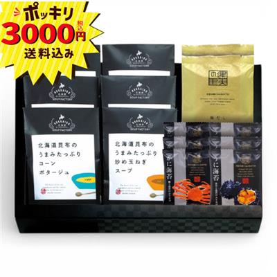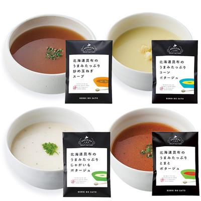 北海道昆布うまみたっぷり(たまねぎスープ×3・じゃがいもポタージュ・コーンポタージュ・とまとポタージュ)・極だし6g×2・ふりかけ(かに海苔・うに海苔)2g×各3 【卵・乳成分・小麦・えび・かに】
