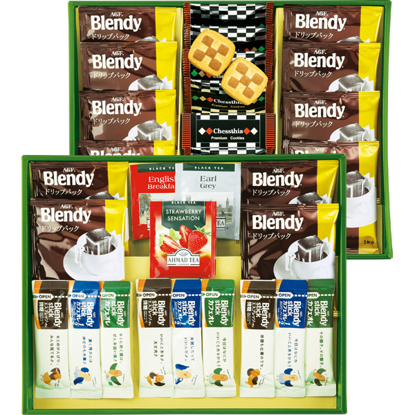 チェスティアクッキー×12・AGFブレンディコーヒー(ドリップ式)7g×12・紅茶(アールグレイ・ブレックファースト・ストロベリー)各2g・AGFブレンディスティック(エスプレッソオレ5.8g・カフェオレカロリーハーフ5.4g・カフェオレ8.2g)各3 【卵・乳成分・小麦】