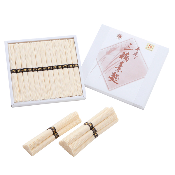 素麺発祥の地、三輪地方で昔からの伝統の技法を受け継ぎ丹念に作った手延べ素麺を蔵で熟成させました。