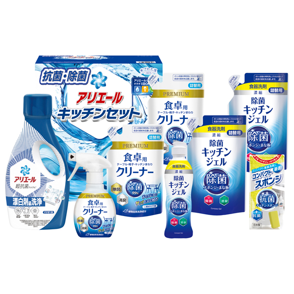 アリエールジェル700g・除菌キッチンジェル(本体200mL・詰替160mL×2)・食卓用クリーナー(本体260mL・詰替250mL×2)・コンパクトスポンジ