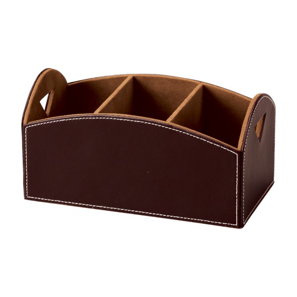 シックなブラウンカラーのメガネ&リモコンラックです。内部はキズが付きにくいよう起毛加工を施しています。