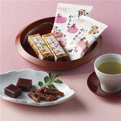 かりんとう(黒蜜10g・白蜜10g各2)、羊羹(小倉・本練り各1)