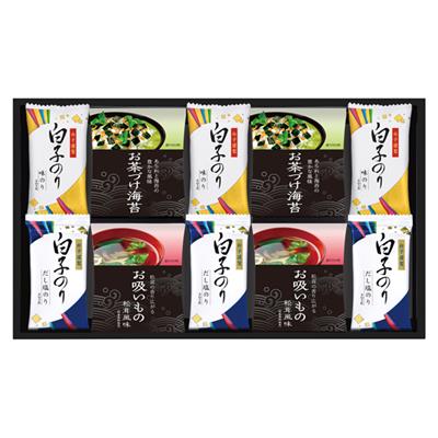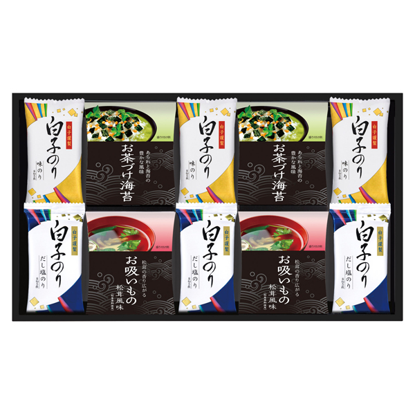 白子のり味付のり(8切5枚)・白子だし塩のり(8切5枚)各6、永谷園お茶づけ海苔(5袋入)・永谷園お吸いもの松茸風味(6袋入)各2