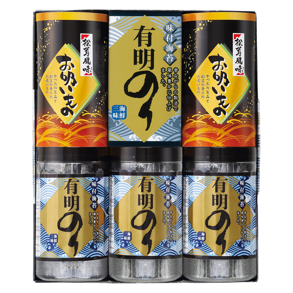 有明海産味付のり(8切20枚)×3、永谷園松茸風味お吸い物(4袋入)×2