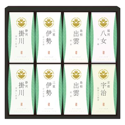 静岡 掛川深蒸し煎茶ティーバッグ(5袋)・三重 伊勢かぶせ茶ティーバッグ(5袋)・島根 出雲煎茶ティーバッグ(5袋)各2・京都 宇治抹茶入煎茶ティーバッグ(5袋)・福岡 八女玉露ティーバッグ(5袋)各1