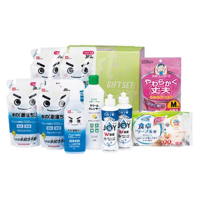 レック水の激落ちくん詰替用360mL×4、P&G除菌ジョイコンパクト170mL×2、レック水の激落ちくん400mL・セスキクリームクレンザー400g・クリンクル食卓テーブル用シート(30枚入)・ゴム手袋各1・ゴム手袋/マレーシア製、その他/日本製