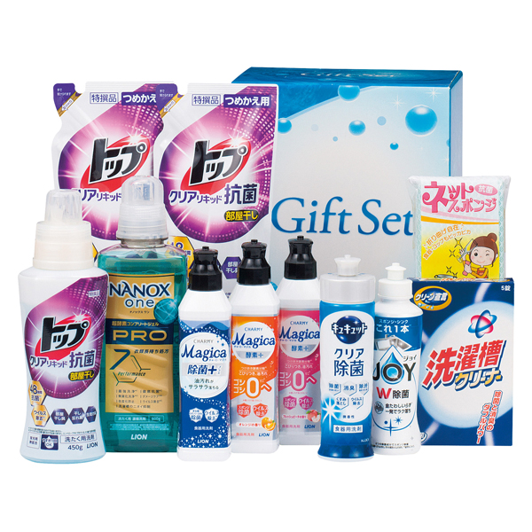 ライオントップクリアリキッド抗菌詰替用350g×2、ライオンNANOX one PRO600g・ライオントップクリアリキッド抗菌450g・P&G除菌ジョイコンパクト170mL・ライオンCHARMY Magica除菌+220mL・ライオンCHARMY Magica酵素+オレンジの香り220mL・ライオンCHARMY Magica酵素+フレッシュピーチの香り220mL・花王キュキュット(クリア除菌)220mL・洗濯槽クリーナー(5錠箱入)・ネットスポンジ各1・ネットスポンジ/中国製、その他/日本製
